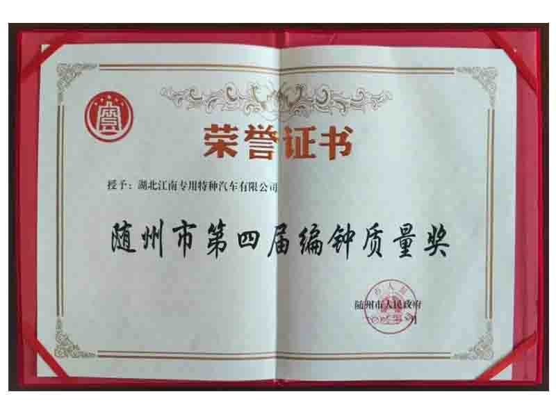 湖北江南專用特種汽車有限公司經(jīng)過申報推薦、資格審查、資料評審、現(xiàn)場評審、問詢答辯、綜合評價、審議公示等程序,被授予“隨州市第四屆編鐘質量獎”。
